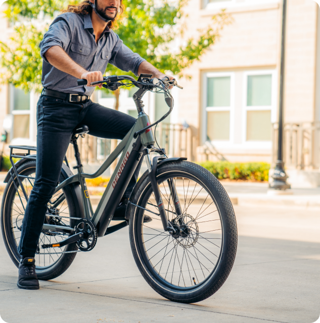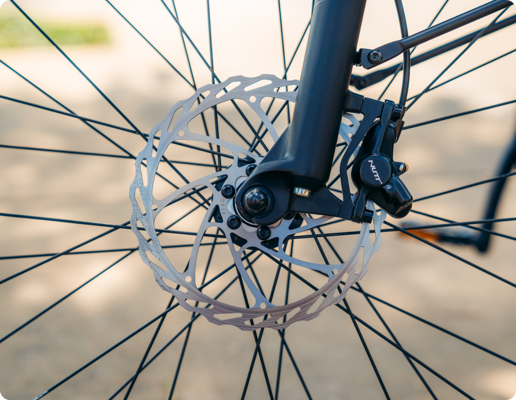 Faster, heavier eBikes demand more stopping power. Commute Model 1 includes hydraulic disc brakes with oversized rotors, plus motor-interrupt safety switches.
